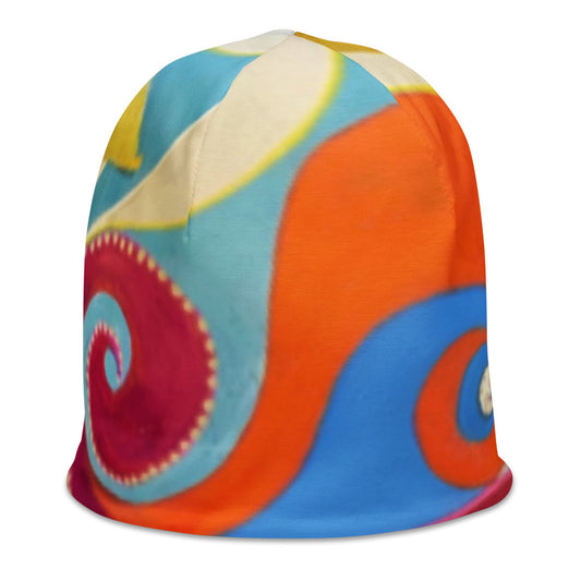 Each of Romney's beanie hats is created using designs from her hand-painted original art. It's art you can wear every day!